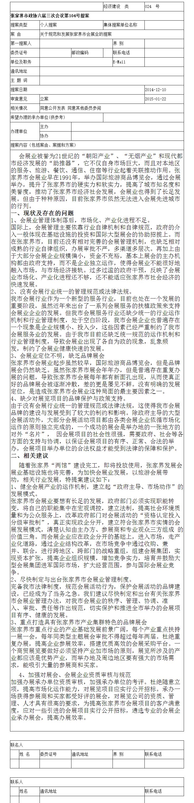 市政协六届三次会议第104号提案 ——规范和发展张家界市会展业