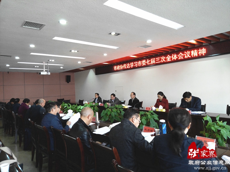 4月1日下午,市政协召开学习会,传达学习市委七届三次全体会议精神。市政协主席、党组书记汪业元,市政协副主席、党组副书记彭红,市政协副主席周芳、褚新年,市政协秘书长周双全参加会议。